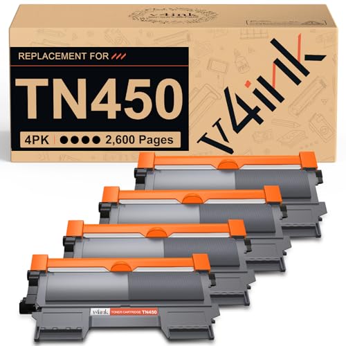 v4ink Compatible Toner Cartridge Replacement for Brother TN450 TN420 Black Toner Cartridge High Yield to use for HL-2240d HL-2270dw HL-2280dw MFC-7360n MFC-7860dw IntelliFax 2840 2940 Printer 4 Pack