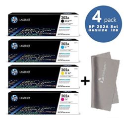 HP 202A BCYM Original Laserjet Toner Cartridge Set CF500A, CF501A, CF502A, CF503A - for Hp Laserjet M254dw, MFP M281fdw Printers + InkSaver Microfiber LCD Screen Cleaning Cloth