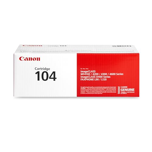 Canon Genuine Toner, Cartridge 104 Black (0263B001), 1 Pack, for Canon imageCLASS D420, D480, MF4150d, MF4270dn, MF4350d, MF4370dn, MF4690 Laser Printers and FAXPHONE L120, L90Canon Genuine Toner, Cartridge 104 Black (0263B001), 1 Pack, for Canon imageCLASS D420, D480, MF4150d, MF4270dn, MF4350d, MF4370dn, MF4690 Laser Printers and FAXPHONE L120, L90