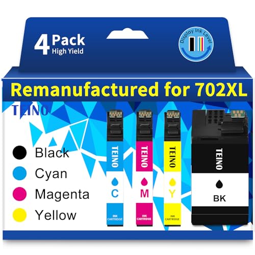 TEINO Remanufactured Ink Cartridge Replacement for Epson 702 702XL T702XL use with Epson Workforce Pro WF-3720 WF-3730 WF-3733 (Black, Cyan, Magenta, Yellow, 4-Pack)TEINO Remanufactured Ink Cartridge Replacement for Epson 702 702XL T702XL use with Epson Workforce Pro WF-3720 WF-3730 WF-3733 (Black, Cyan, Magenta, Yellow, 4-Pack)